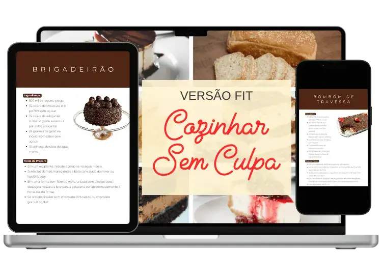 É um material completo que oferece mais de 500 receitas versão fitness, sem açúcar, sem glúten e sem lactose. Todas detalhadamente explicadas passo a passo.